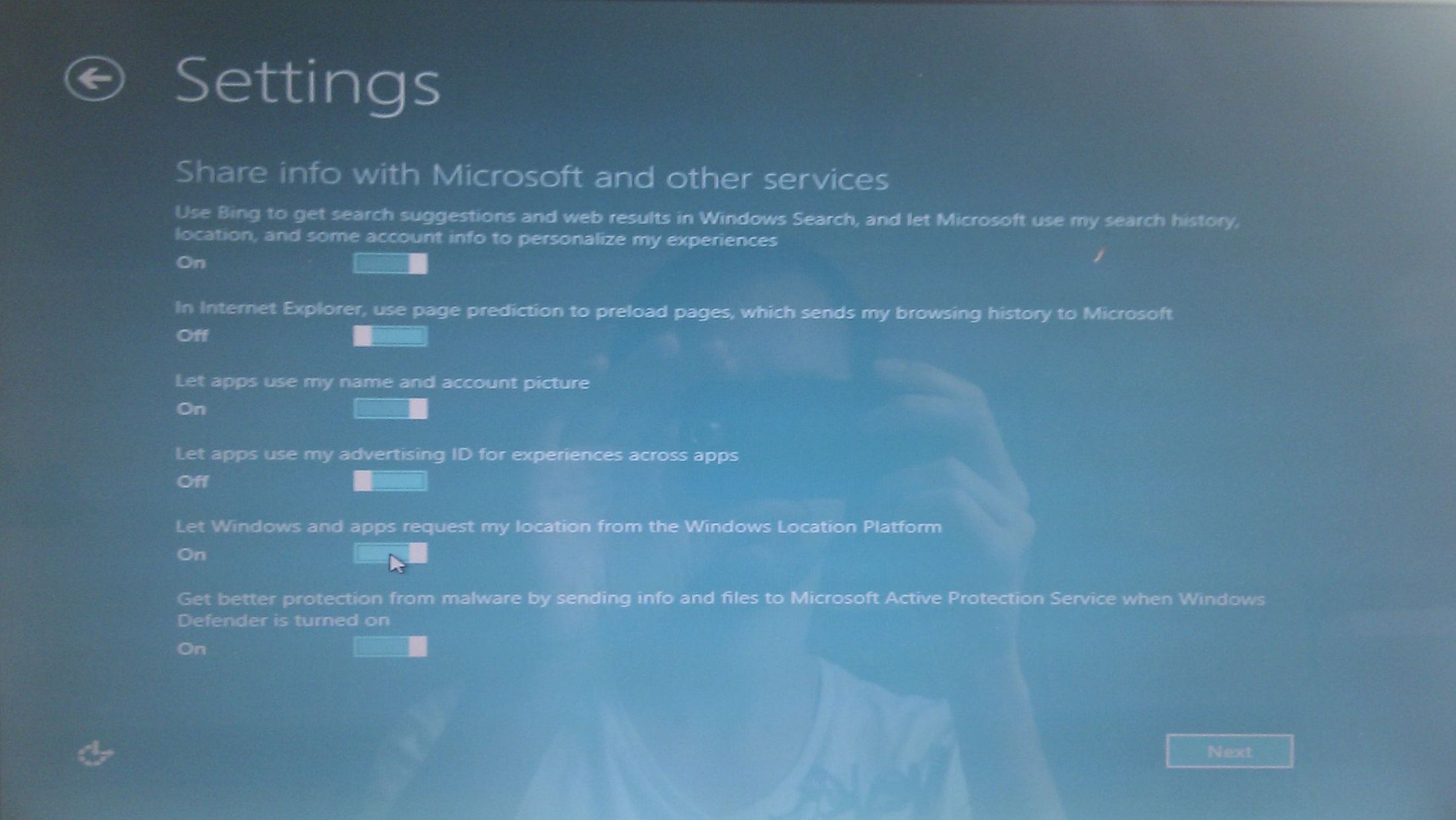 And last thing - "Share info with Microsoft and other services"